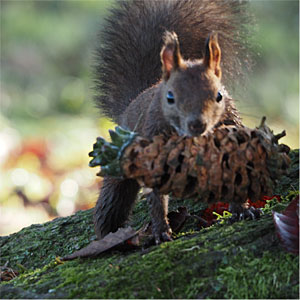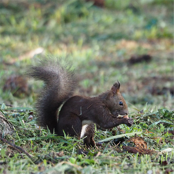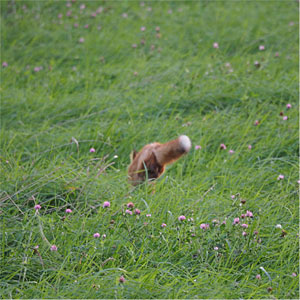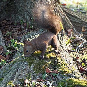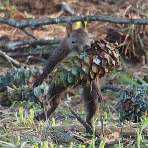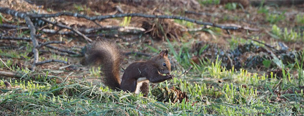 二十間道路に着いた頃は曇り、ウグイスの声が聞こえていました。帰り道は青空へ。今朝はウサギと忙しく駆けまわるリスを写真に。 |