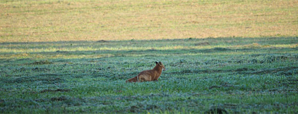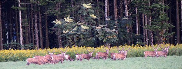 朝7時30分頃の気温は-3℃。牡鹿の群れが二十間道路を横切って行くのを写真に。 |