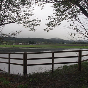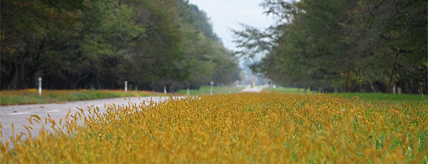 二十間道路へ向かう道 今朝は霧がかかっていました。 | |