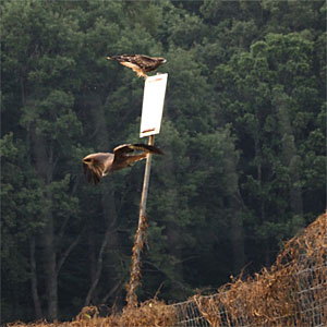 キジがウサギに近づいてゆくとウサギは逃げてしまった。 |