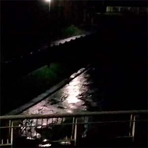 上の2枚の写真は21日午前1時半頃の市街地を流れる川の様子です。もう少しで護岸のブロックを超えそうなくらい水が出ていました。新ひだか町では午前1時30分までの24時間の降水量は103mmとのことです。 |