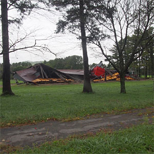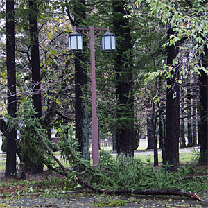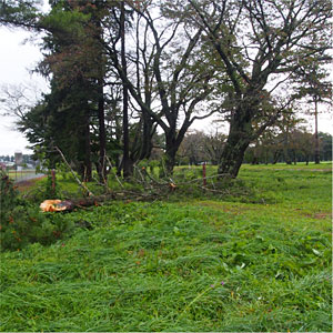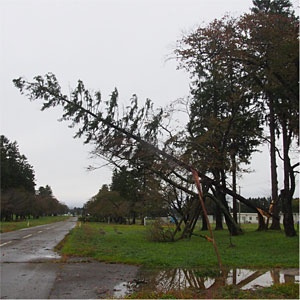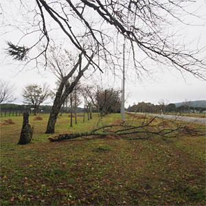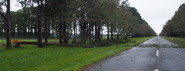 昨夜から未明にかけて暴風雨でした。二十間道路では強風による被害がありました。写真は今朝の二十間道路、午前7時半頃の気温は14℃、曇り。 最後の写真は今日から始まる静内神社祭の出店の準備の様子、だんだんと青空が広がってきました。 |