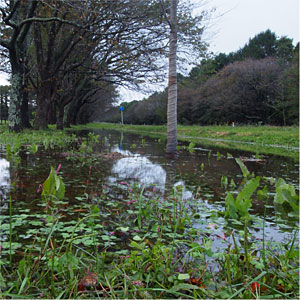 今日の最高気温は29℃、湿度も高くムシムシする一日。午後3時過ぎには雷と強い雨。雨が上がりに虹が架かるかなと写真を撮りに出た午後4時ころの様子です。 |