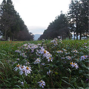 | 午前5時半の気温は17℃。空気や虫の声が秋の訪れを知らせているような朝。 二十間道路の花のトンネルで昨日、熊の目撃情報があったとの看板がありました。くれぐれも注意しましょう。 |