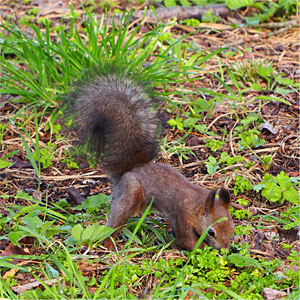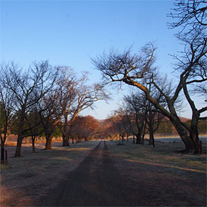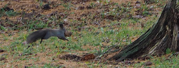 | 二十間道路に着いた頃は曇り、ウグイスの声が聞こえていました。帰り道は青空へ。今朝はウサギと忙しく駆けまわるリスを写真に。 | |