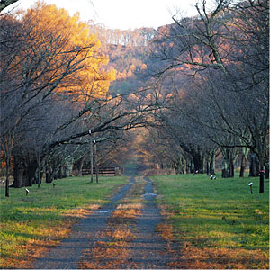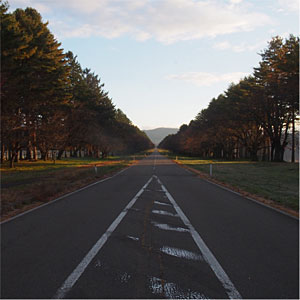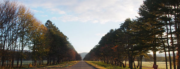 | 二十間道路へ向かう道 今朝は霧がかかっていました。 | |